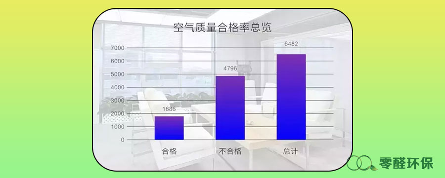 室內空氣污染的主要有害氣體是甲醛和TVOC(總揮發性有機物),在6482個檢測樣本中,這2種氣體超標點位共計4796個,占總不合格點位的97.3%。